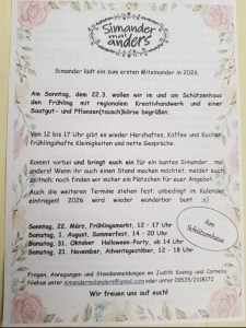 Wer Vorschläge zur Terminaufnahme oder Änderungswünsche hat, schreibt bitte an dorfverein@schletau.de